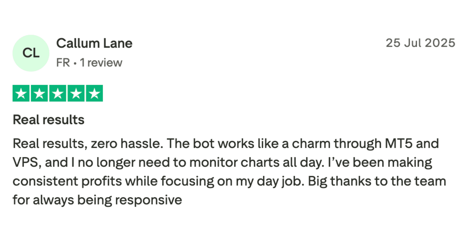 Within 24 hours, your automated trading begins working for you. The Dark Algo EA monitors markets 24/5, applying advanced risk management and proven strategies to generate consistent monthly returns while you focus on what matters most to you.